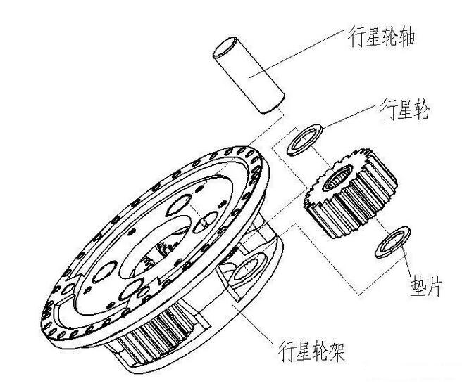 在行星齒輪組結(jié)構(gòu)中,沿行星減速機(jī)殼體中的齒圈圍繞齒輪(太陽輪...