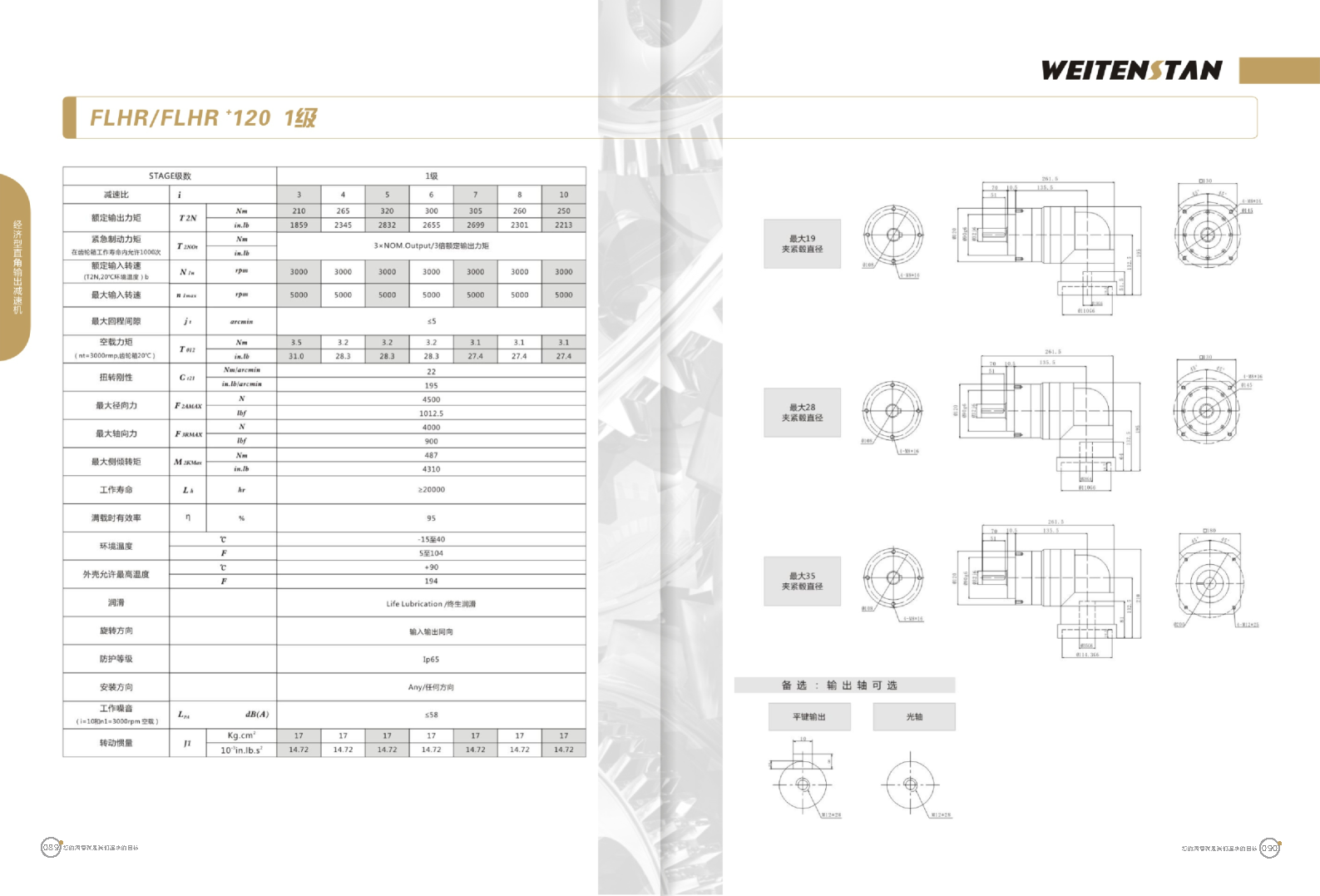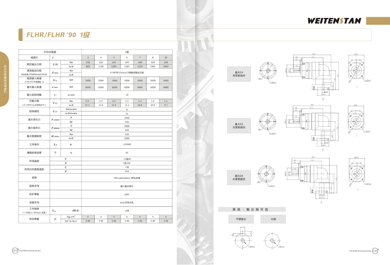 FLHR系列經濟型直角輸出減速機。 FLHR產品系列的經濟型轉角式減速機。 極高的功率密度。盡管以往系列性能極為出色,但我們成功的將扭矩提高了近40%。不斷提高極限值,典型威騰斯坦產品! 電機安裝簡易。電機可安全簡易的一步安裝,另外您也可以選擇威騰斯坦享有的專利權的,帶有長度補償軸的安裝。 任意位置安裝。不管你在哪個位置安裝,你的齒輪箱始終有相同的潤滑油/潤滑脂量。安裝靈活、齒輪箱能夠垂直、水平、與從動軸一起向上或向下安裝。 極高的定位精度。根據用戶需求,你可獲得回程間隙小于角分的高型行星齒輪箱。這也大大提高了你應用上的定位精度。 通過齒輪嚙合,運轉平穩。相比直齒嚙合齒輪箱,本公司的斜齒嚙合齒輪箱運轉噪音減低了50dB-A,你深知50dB-A所創造的價值遠遠高于70dB-A。此外還有:不再感動振動,運轉平穩到令人驚訝。 世界水平的預期壽命。原材料進行了優化,幾何形狀同樣進行了優化。