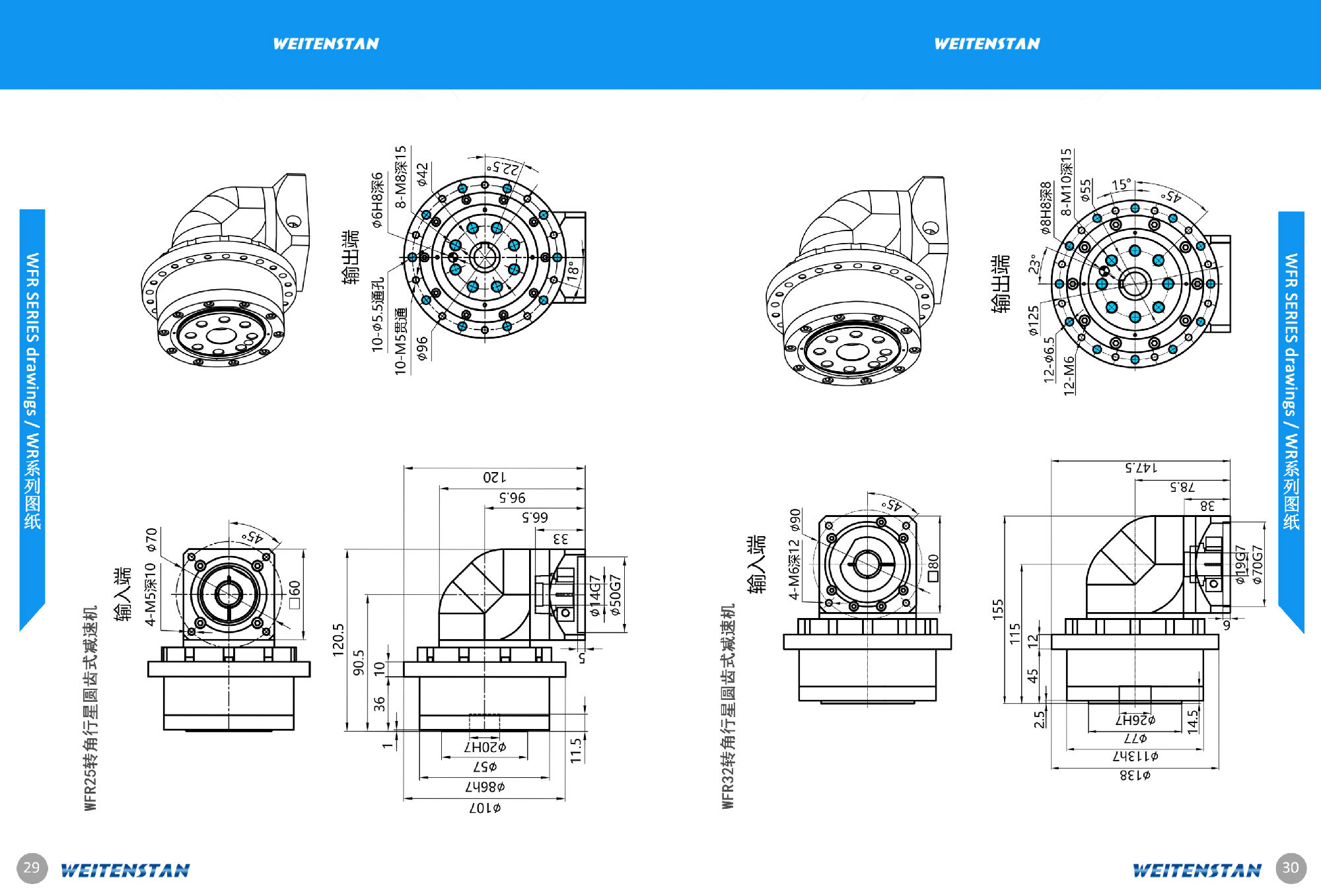 WFR系列時(shí)帶法蘭的高精度減速機(jī),其特點(diǎn)時(shí)輸入和輸出的角度為90°,可大大節(jié)省安裝空間、模塊化設(shè)計(jì)可以通過(guò)法蘭安裝電機(jī)和減速機(jī)。